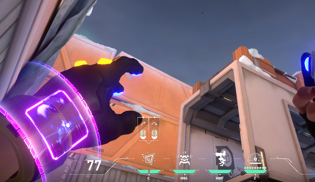 まずはこれを覚えましょう。相手のキルジョイのタレットの位置の癖を読んで使いましょう。